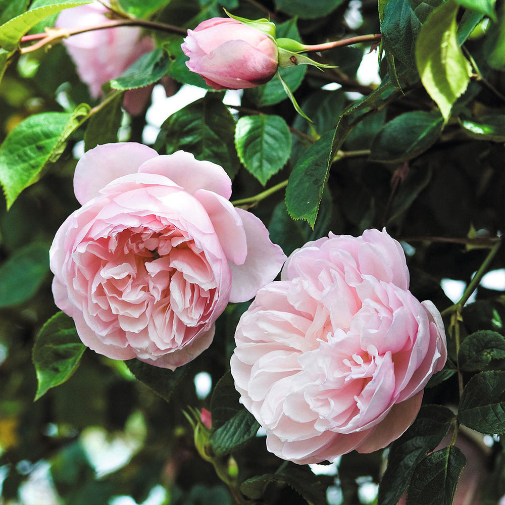 The Generous Gardener® English Climbing Rose brings an enchanting allure to any garden with its exquisite blooms and delightful scent. Each rose features soft, blush-pink petals that gracefully open to reveal a charming center, enticing pollinators and passersby alike. The lush, dark green foliage provides the perfect backdrop for these stunning flowers, adding richness and contrast to your landscape throughout the growing season. This variety not only catches the eye but also emits a deep, old rose fragrance that transforms your outdoor space into a fragrant oasis.